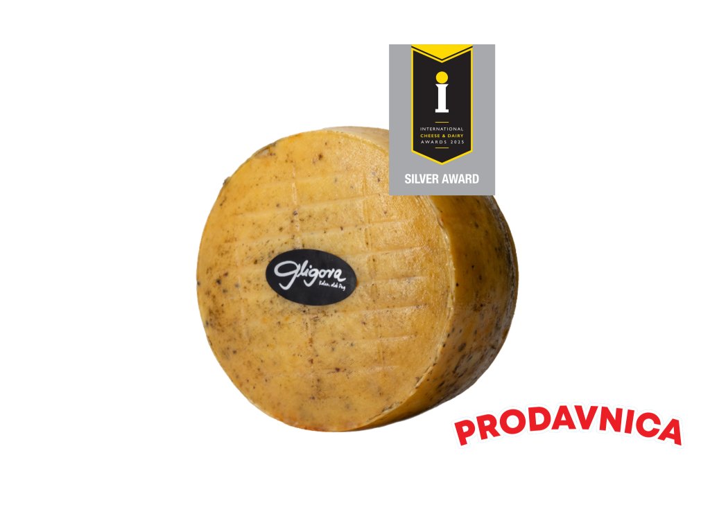 Ovčí sýr s lanýži Gligora 225 g – delikatesa z ostrova Pag, kde se výrazná chuť ovčího sýra snoubí s intenzivním aroma černých lanýžů.