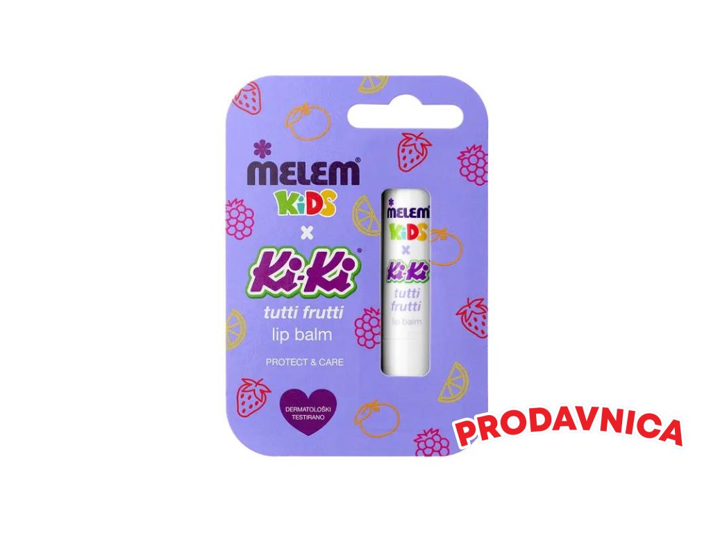 Melem Kiki balzám na rty Tutti Frutti 4,5 g – pečující balzám s ovocnou vůní, který dodává rtům jemnost a vláčnost.