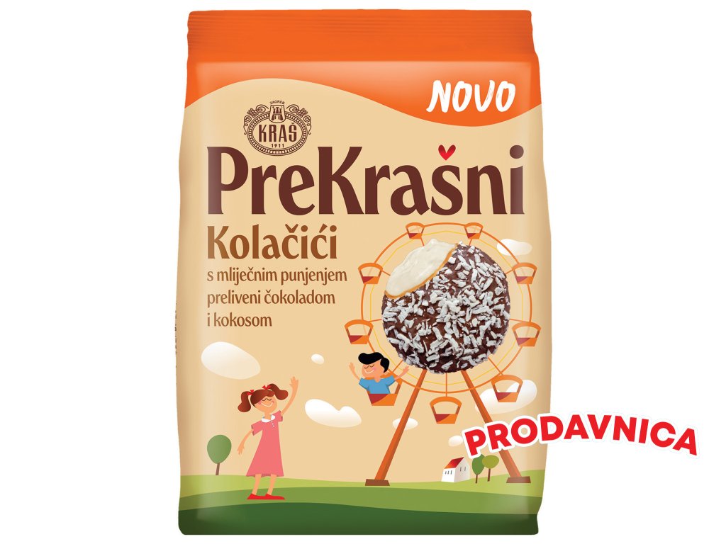 Kraš Prekrašni kokos 200 g jsou křehké sušenky s lahodnou kokosovou náplní. Oblíbené pečivo značky Kraš s plnou chutí kakaa.