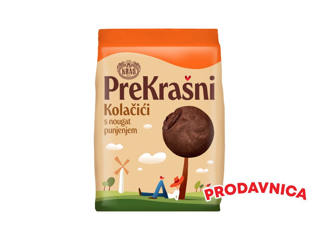 Kraš Prekrašni nugát 220 g jsou křehké sušenky s lahodnou nugátovou náplní. Oblíbené pečivo značky Kraš s plnou chutí kakaa.